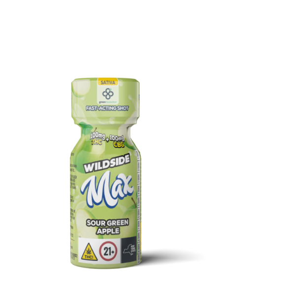 WildSide MAX Sour Green Apple packs 100mg THC and 100mg CBG into a 2oz powerhouse built for fast action and all-day energy. This isn’t your average cannabis drink—it hits hard, tastes crisp, and fits in your pocket.